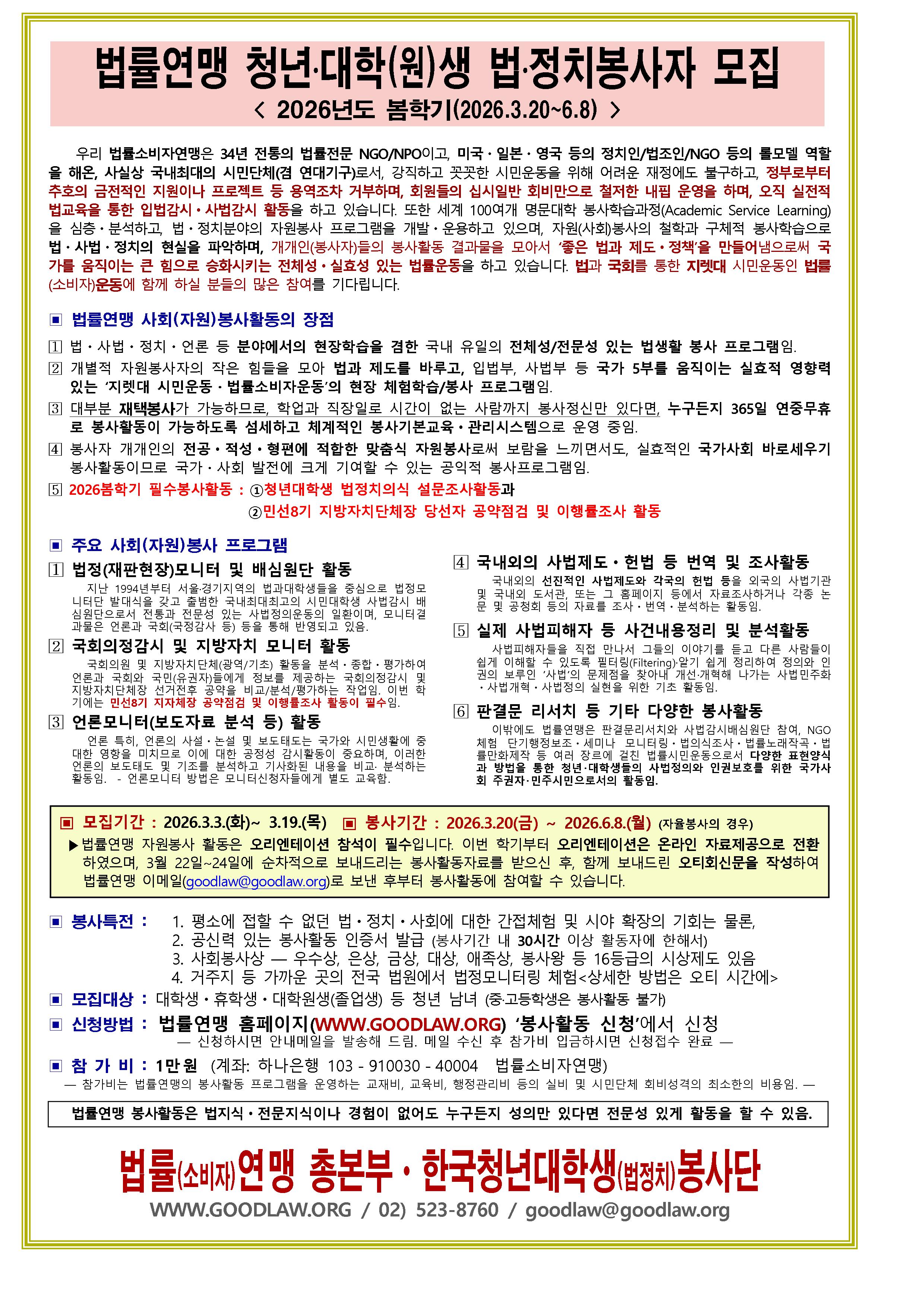 2026년 봄학기 봉사활동 신청하세요.